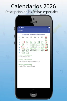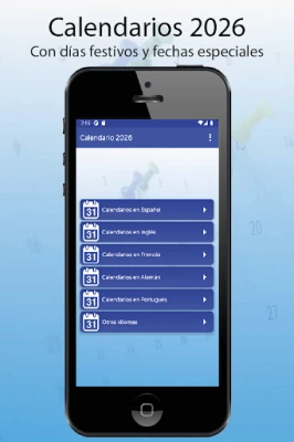 Lietotne "Calendarios 2026 con festivos" Android ierīcēm. Atklājiet 2026. gada svētkus, īpašos datumus un mēness fāzes. Tā ir noderīga un praktiska lietotne, lai vienmēr būtu informēts par svarīgiem notikumiem.