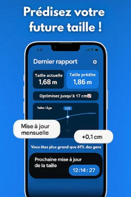 "Grandir" ir jūsu uzticamais ceļvedis ceļā uz pilnvērtīgāku fizisko potenciālu un uzlabotu stāju. Šī inovatīvā lietotne sniedz personalizētu ieskatu jūsu auguma dinamikā, palīdzot atklāt ne tikai jūsu pašreizējo izmēru, bet arī to, kāds varētu būt jūsu maksimālais potenciāls. Ar "Grandir" jūs iegūstat skaidru izpratni par savu unikālo izaugsmes ceļu, balstoties uz rūpīgiem aprēķiniem un individuālām rekomendācijām. Tā ir vairāk nekā tikai lietotne – tas ir jūsu personīgais fiziskās attīstības plānotājs.
