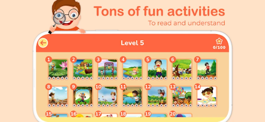 Atklājiet lasīšanas prieku ar šo interaktīvo lietotni, kas paredzēta bērniem. Lasītprasmes vingrinājumi pārtop aizraujošās atklājumu spēlēs, veicinot izpratni un bagātinot vārdu krājumu. Mācieties jebkurā vietā, jo interneta savienojums nav nepieciešams.