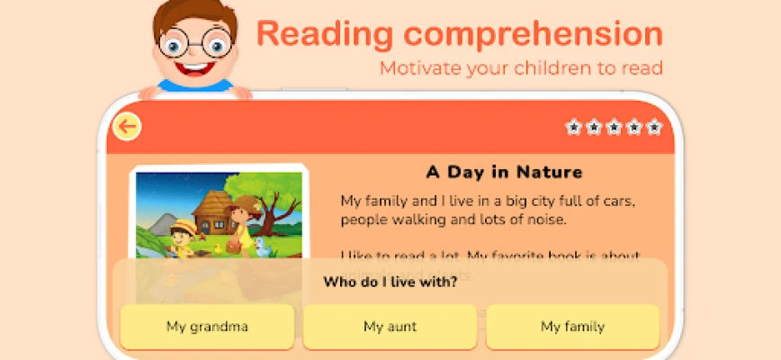 Vai vakara pasaku lasīšana jūsu mājās reizēm pārvēršas par izaicinājumu, nevis mierīgu un jautru ģimenes brīdi? Lietotne "I Read - Reading comprehension" piedāvā inovatīvu pieeju, kā jūsu bērnam iemācīt, ka lasīšana ir aizraujoša spēle. Ar saistošiem tekstiem un košām ilustrācijām šī izglītojošā lietotne palīdz attīstīt lasītprasmi un teksta izpratni jautrā un interaktīvā veidā. Jūsu bērna prasmes un pašpārliecība augs, veiksmīgi pabeidzot katru no pieciem viegli lietojamiem līmeņiem, kas soli pa solim vedina uz pilnīgu teksta izpratni. Katra pareizā atbilde tiek atalgota ar priecīgu skaņas signālu, motivējot turpināt lasīt un mācīties, pārvēršot lasīšanu par jautru nodarbi, kas veicina ilgtermiņa izglītību un mīlestību pret mācīšanos.
