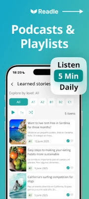 Apgūstiet spāņu valodu katru dienu ar Learn Spanish: Daily Readle. Lietotne piedāvā reālas ziņas un stāstus, kas ir pielāgoti jūsu līmenim, izmantojot CEFR sistēmu. Veidojiet lasīšanas ieradumu un uzlabojiet sapratni ar šiem ekspertu veidotajiem kursiem.