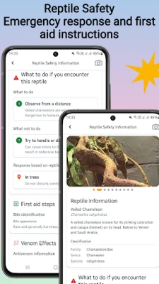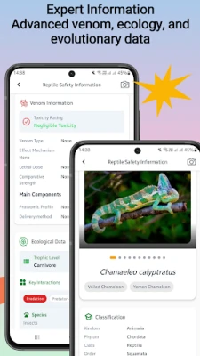 Pēc identifikācijas Reptile Identifier atver durvis uz plašu zināšanu krātuvi. Ienirstiet dziļāk katras sugas detalizētos aprakstos, izpētot to unikālās uzvedības nianses, dabiskās dzīvotnes, diētu un precīzu zinātnisko klasifikāciju. Tāpat saņemiet svarīgus drošības brīdinājumus par potenciāli indīgām vai bīstamām sugām, kā arī praktiskus padomus, kā saglabāt drošību savā apkārtnē. Vizualizējiet rāpuļu izplatību, apskatot detalizētas kartes, kas ilustrē to ģeogrāfisko izplatību un galvenās dzīvotņu zonas visā pasaulē.