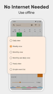 Izbaudiet izcilu lietotāja pieredzi bez traucēkļiem. Simple Calendar 2023 ir pilnīgi brīvs no reklāmām un uznirstošajiem logiem, turklāt tam nav nepieciešama piekļuve internetam, kas garantē jūsu privātumu, drošību un stabilu darbību. Sekojiet līdzi savai ikdienas kārtībai ar dienas plānotāju, pārvaldiet saspringtus nedēļas grafikus un efektīvi organizējiet darba kalendāru, kas pat ir koplietojams ar kolēģiem. Ātri importējiet svētku dienas un kontaktu dzimšanas dienas, filtrējiet notikumus pēc veida un pat apskatiet pasākumu norises vietas kartē. Šis rīks piedāvā ātras pārslēgšanās iespējas starp dienas, nedēļas, mēneša, gada un notikumu skatiem, lai jūs vienmēr būtu informēts. Simple Mobile Tools lepojas ar atvērtā pirmkoda pieeju un tulkojumu vairāk nekā 45 valodās, nodrošinot vispārēju pieejamību.
