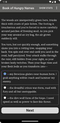 Iegremdējieties Dvēseļu Pasaules (World of Darkness) drūmajā visumā ar "Werewolf: The Apocalypse — The Book of Hungry Names" — interaktīvu romānu, ko radījis Kyle Marquis. Šis milzīgais, tikai tekstā balstītais piedzīvojums ar 1,6 miljoniem vārdu atdzīvojas vienīgi jūsu iztēles neapturamajā spēkā, bez grafikas vai skaņu efektiem. Jūs esat vilkacis – pārvēršanās meistars, mistiķis, varonis un briesmonis vienlaikus. Kā Gajas radīts, jums ir dāvana mainīt formu starp cilvēku un vilku, un jūsu uzdevums ir būt Zemes pēdējam sargam, apturot cilvēci no pasaules iznīcināšanas. Taču šis svētais pienākums ir pagātnes ēna – jūs esat cietuši neveiksmi.
